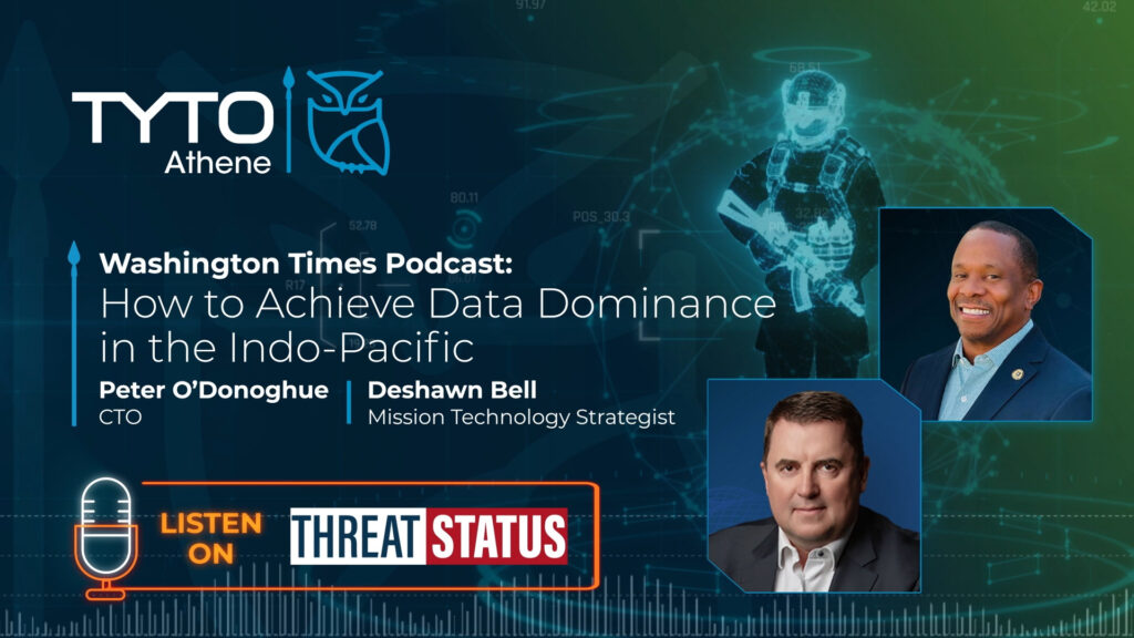 On a recent episode of the Washington Times Threat Status podcast, Peter O’Donoghue, Chief Technology Officer at Tyto Athene, and Deshawn Bell, Mission Technology Strategist, discussed how the U.S. and its allies can achieve data dominance across the Indo-Pacific—addressing the “tyranny of distance,” simplifying mission-partner collaboration, and leveraging AI to enhance mission decision-making.