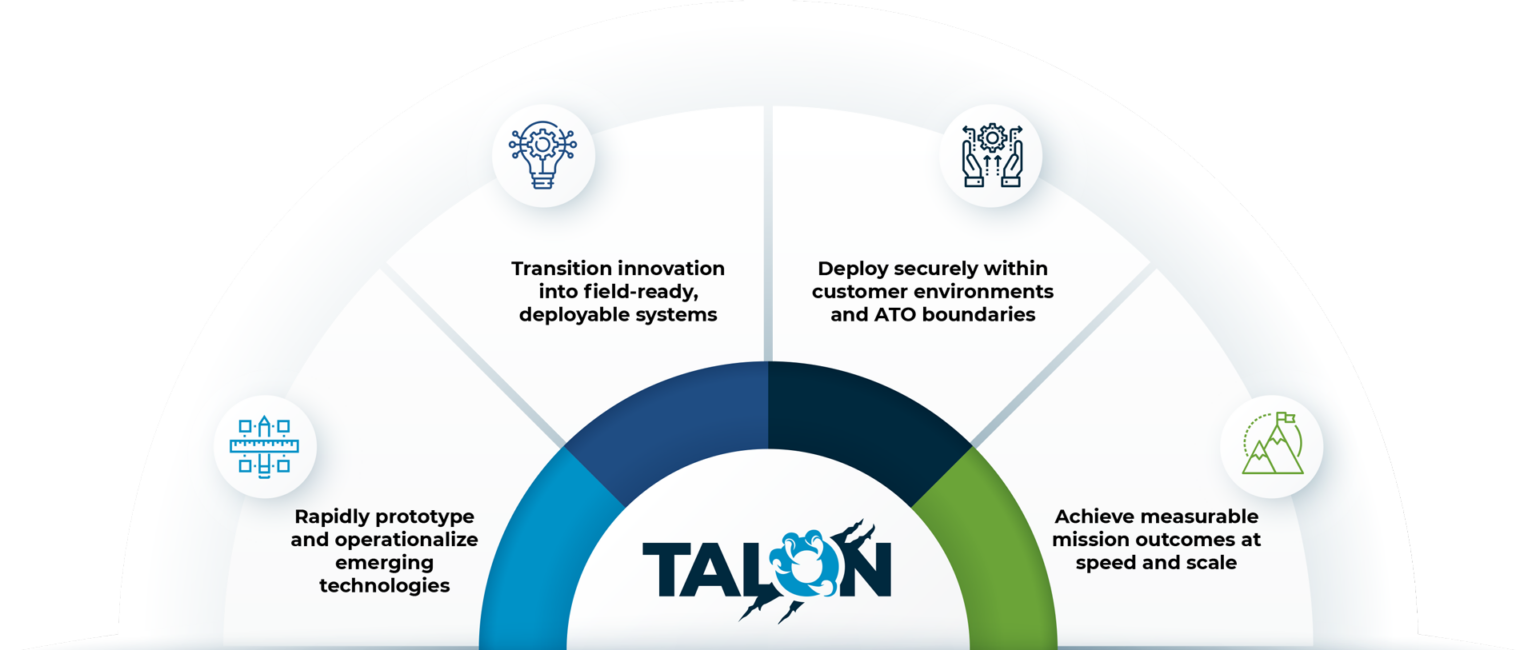 Operating as a physical and digital lab environment, TALON accelerates the design, prototyping, integration, and deployment of secure, data-centric, artificial intelligence (AI)-driven solutions—enabling agencies to move quickly from concept to operational impact without compromising security, compliance, or mission assurance.
